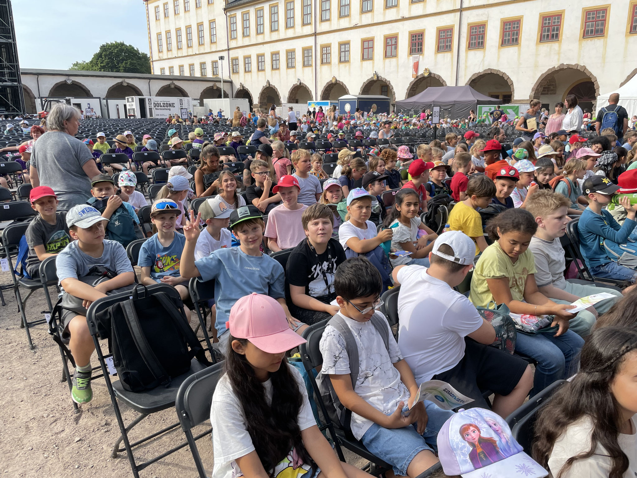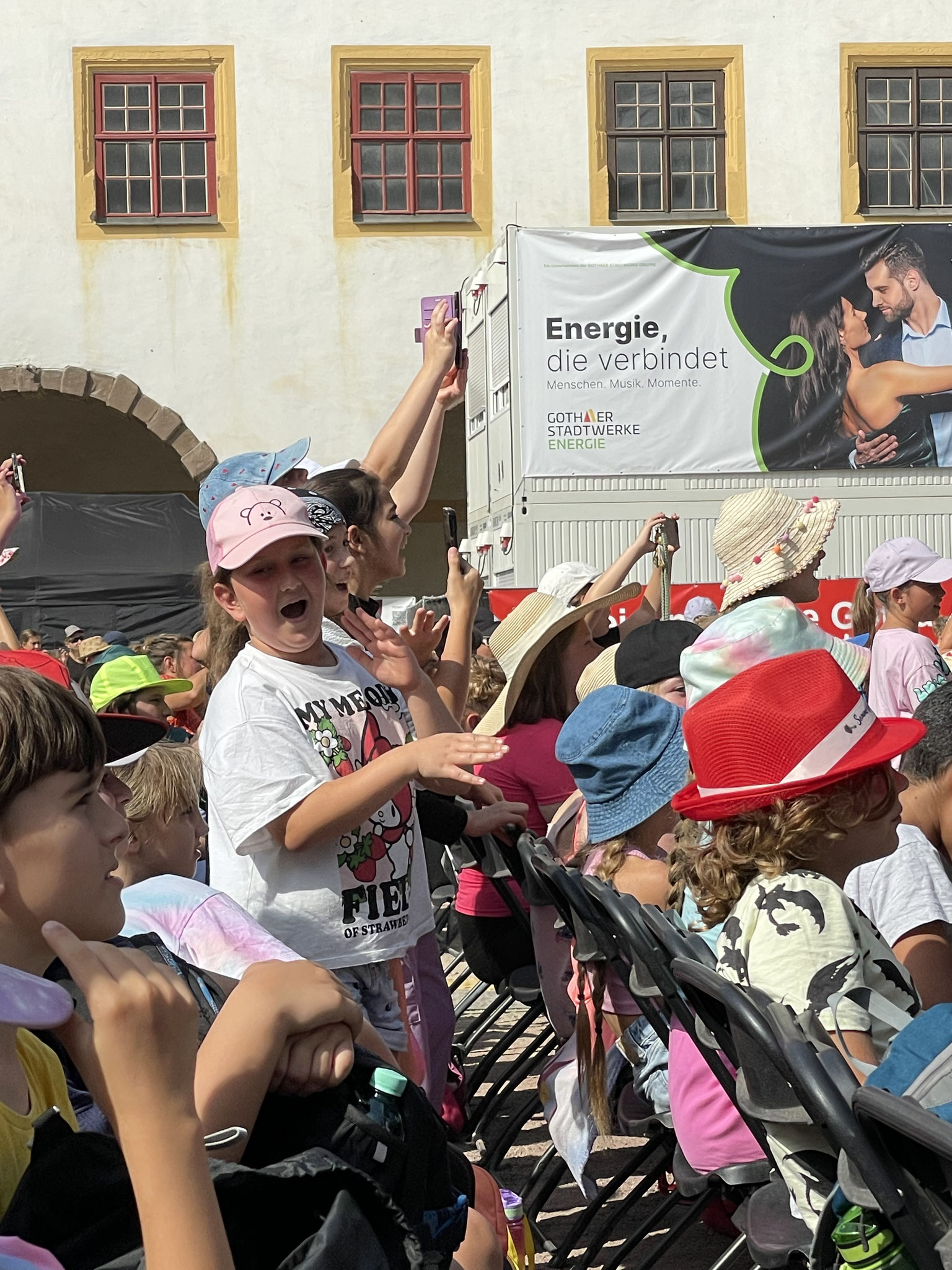 Unsere vierten Klassen besuchten bereits in der ersten Schulwoche ein Open-Air-Konzert in Gotha im Innenhof des Schoss Friedensteins. Begeistert lauschten und tanzten sie zu bekannten Songs wie "Azizam", "Chöre", "Komet", "APT" und einige mehr - performt von Thomas Hahn, der Thüringer Philharmonie und einem Chor aus 200 Schülern.