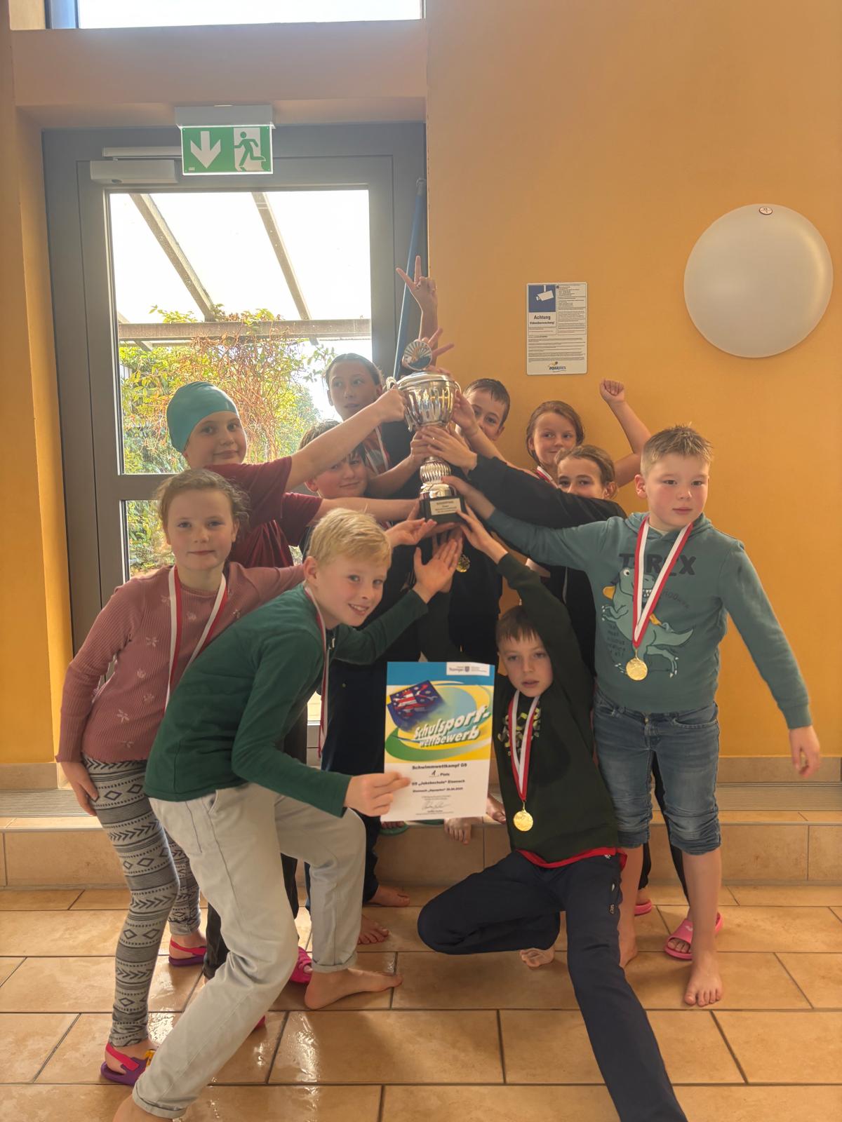 Nachdem unsere besten Schwimmer und Schwimmerinnen bei den Landesmeisterschaften erfolgreich den dritten Platz belegt haben, nahmen wir nun am nächsten Schwimmturnier teil und konnten dieses sogar gewinnen. Herzlichen Glückwunsch an all unsere Wasserratten :)